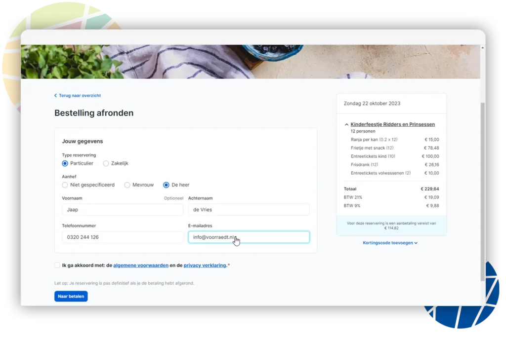 Passen Sie den Ablauf der Online-Buchung individuell an, je nach Art des Events oder Pakets. Bei der Buchung einer Kinderparty können Sie beispielsweise einen Schritt für die Online-Bezahlung hinzufügen, während bei der Buchung eines Meetings die Auswahl des Veranstaltungsortes integriert werden kann.