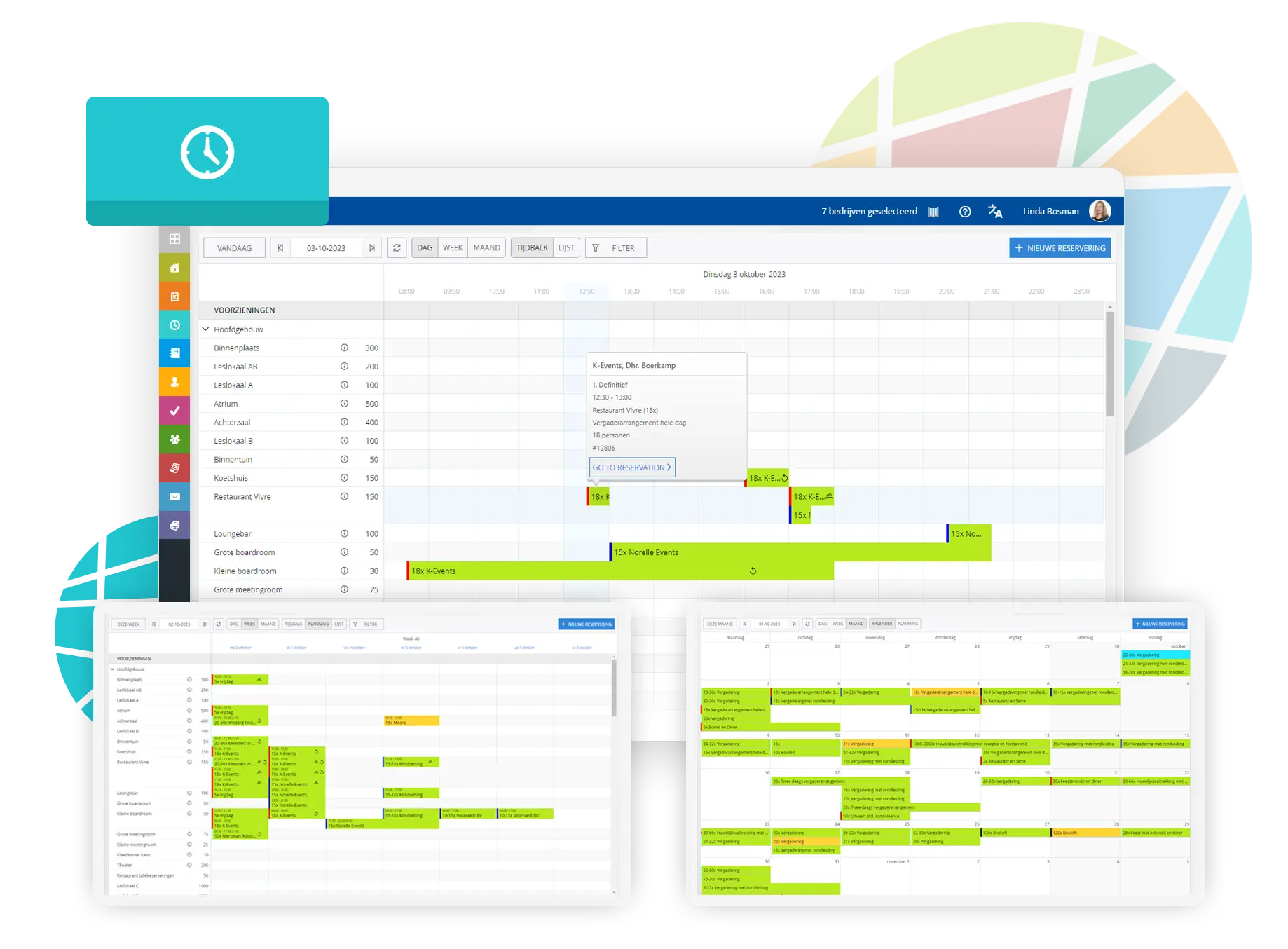 Maak met één druk op de knop het volledige proces van het evenement inzichtelijk voor alle betrokken partijen. Pas je de reservering aan, dan zal het draaiboek automatisch up-to-date zijn. Foutloos en snel.