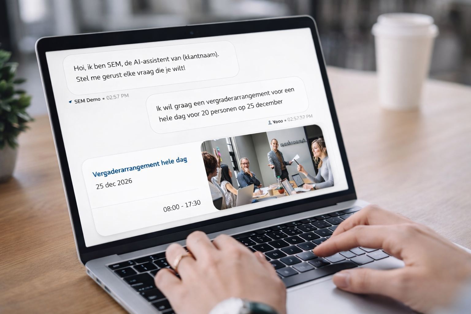 De AI-chatbot is gekoppeld aan Smart Event Manager en werkt samen met de module Online Reserveren. Bezoekers kunnen via de chatbot informeren naar beschikbare arrangementen, direct de beschikbaarheid controleren en vervolgens starten met een online offerte-aanvraag of reservering.